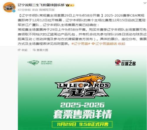 | 11月27日,目前仍是CBA休赛期,不过新赛季很近了。辽宁队是大家一直关注的,球队今夏忙碌,主要是全运会的备战和比赛。打完全运会后,辽宁队球员短暂休假,近期外援陆续到队,球队开始了CBA新赛季的备战。不久前媒体发布消息,辽宁队主场的套票价格公布。
