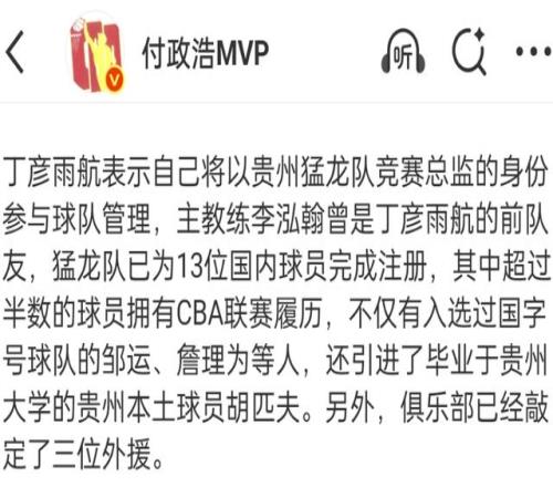 正式官宣!丁彦雨航成为球队老总,携手CBA名将,冲击四强