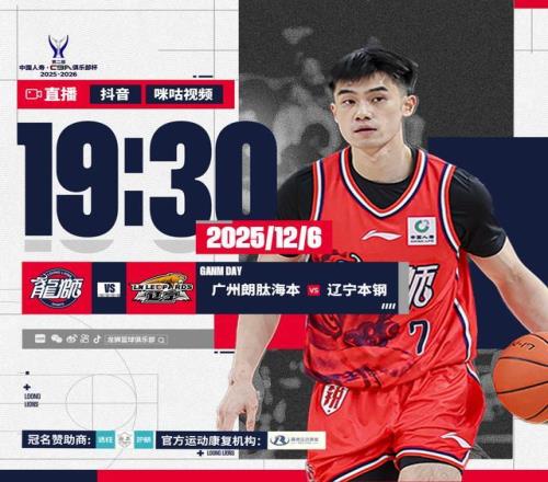 第二届中国人寿·CBA俱乐部杯小组赛 第三场 ⏰2025年12月6日 今晚 19:30 广州朗肽海本 - 辽宁本钢 直播:咪咕视频 & 抖音CBA俱乐部杯