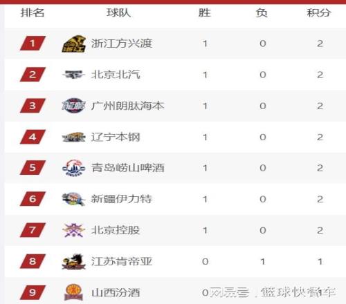 CBA新赛季最新排名出炉!广厦第1辽宁第4:山西输球无缘前8