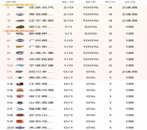 CBA第二轮结束了3场比赛,最新积分榜如下!