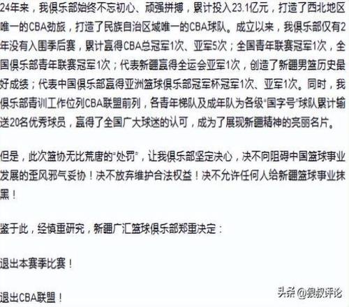 随后,新疆男篮一度选择退出CBA的方式逼迫篮协收回决定,否则将会退出继续投资中国篮球。双方长时间拉扯阶段。