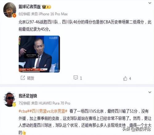 四川51分惨败北京狂刷尴尬纪录:CBA历史半场最低分单场第2低得分