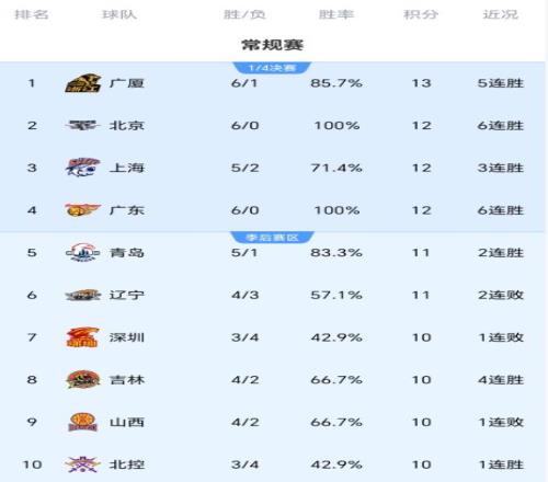 5连胜登顶CBA!北京+广东争冠最强对手出炉,辽宁8名球员仅得4分