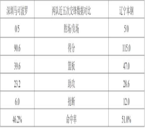 观战指南: 对阵双方:深圳队VS辽宁队 交手时间:12月29日19时35分 比赛场馆:深圳龙华文体中心综合馆 比赛转播:辽宁体育休闲频道、 球队数据: 深圳马可波罗与辽宁本钢历史上一共交手45次,深圳马可波罗10胜35负。 上赛季两队交手2次,深圳马可波罗0胜2负。 本赛季常规赛场均数据对比:
