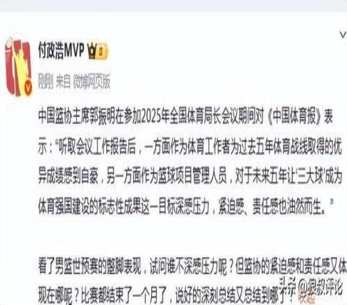 中国篮协主席:对未来五年让“三大球”成为体育强国目标深感压力