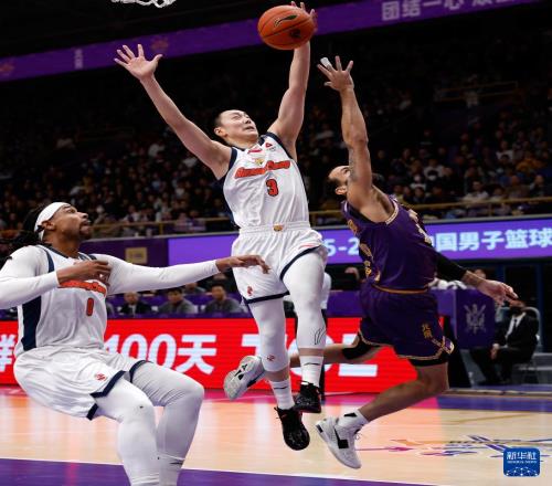 1月3日,北京控股队球员格兰特·里勒(右二)在比赛中上篮。 当日,在2025-2026赛季中国男子篮球职业联赛(CBA)常规赛第10轮比赛中,北京控股队主场89比93不敌广东东阳光队。 新华社记者 王丽莉 摄