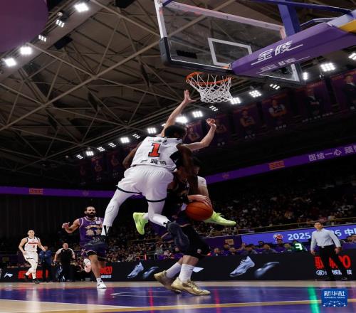 1月3日,广东东阳光队球员李文昊(上)在比赛中争球。 当日,在2025-2026赛季中国男子篮球职业联赛(CBA)常规赛第10轮比赛中,北京控股队主场89比93不敌广东东阳光队。 新华社记者 王丽莉 摄
