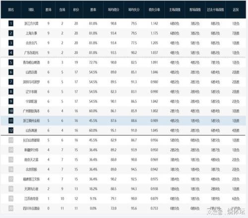 广州朗肽海本 79-76 新疆伊力特 此役广州男篮首节非常凶猛,轰出31-13优势非常明显,新疆队第二节全力追赶到37-47。此后,新疆队尝试继续缩小差距,广州队稳住优势领先9分到末节,顶住了新疆队的反扑。 至此,广州男篮斩获到3连胜,总成绩提升为6胜4负积16分,少赛1场也挤进季后赛区域。新疆男篮综合战绩不太理想,最新战绩为4胜7负积15分,排在季后赛区域之外。 南京天之蓝 66-79 辽宁本钢 此役辽宁男篮首节反客为主,猛冲猛打取得13分优势,第二节南京男篮反击追赶到29-34。此后,南京队继续追赶只差1分了,可是末节跟不上节奏,辽宁男篮成功在客场告捷。 至此,辽宁男篮取得2连胜,同时也拿到新赛季第6胜,排名得以小幅提升。南京男篮遭遇2连败,总成绩改写为4胜7负积15分,目前排名被挤出季后赛区域。