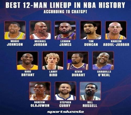 ChatGPT评历史最佳12人阵容:魔神皇佛勾领衔科比KD库里入选