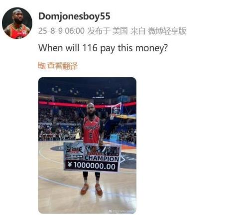 在线讨薪,CBA外援琼斯:集梦116何时支付我的冠军奖金