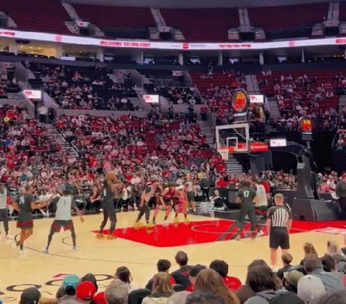 | 今天,开拓者举办了一场公开训练赛,现场坐无虚席,人声鼎沸,热闹非凡。 一场平平无奇的公开训练赛,是谁让开拓者训练馆秒变春晚现场? 不用问了吧?