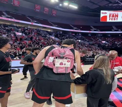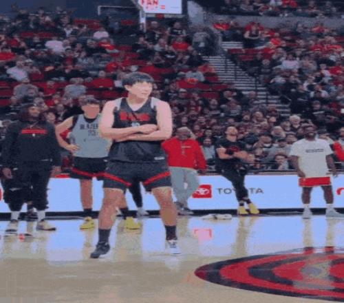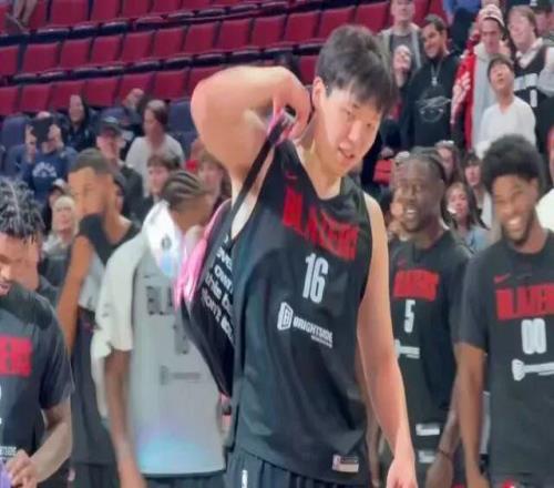 杨瀚森是真的不怯场,相当放松 身为菜鸟的他,接过利指导的粉红小书包,现场载歌载舞,还赢得了开拓者官方的点名表扬: “菜鸟们背着新秀背包尽情跳舞,为球迷狂欢节画上句点!”