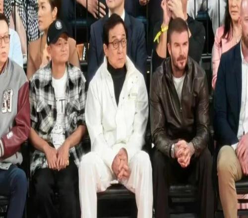 马云身着休闲装,头戴棒球帽,身旁坐着成龙、贝克汉姆等知名大佬。现场还有姚明、奥尼尔、林书豪、梁朝伟刘嘉玲夫妇、梁咏琪等众多娱乐以及体育界人士。