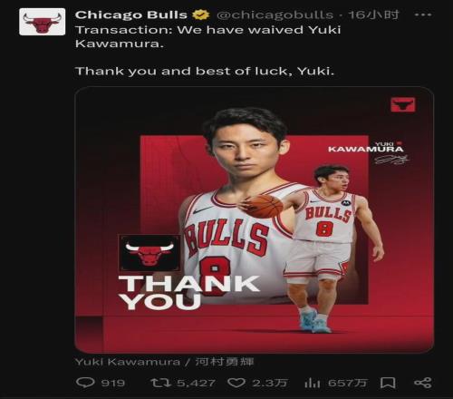 | 在NBA新赛季开始之前,芝加哥公牛队裁掉了球队的双向球员河村勇辉。 公牛随队记者K.C. Johnson报道,河村勇辉被裁是由于健康原因,他此前因右小腿疼痛而缺席了球队季前赛后期的比赛。 他因伤只打了两场比赛,对手都是克利夫兰骑士,场均出场11分钟,得到3分4篮板4助攻。 只从数据的角度,他篮板球表现比杨瀚森都好。 但是NBA很残酷,联盟的所有球员构成了一个巨大的金字塔,他作为底层的,拿双向合同球员,也不可能有杨瀚森的待遇。 被裁,很正常。 既然你有伤,那就先去养好再说,别占着位置了。 河村这个位置怎么来的? 今年夏季联赛,他代表公牛出战,场均得到9.6分2.4篮板6.6助攻2.2抢断的全面数据,从而获得了一份双向合同。