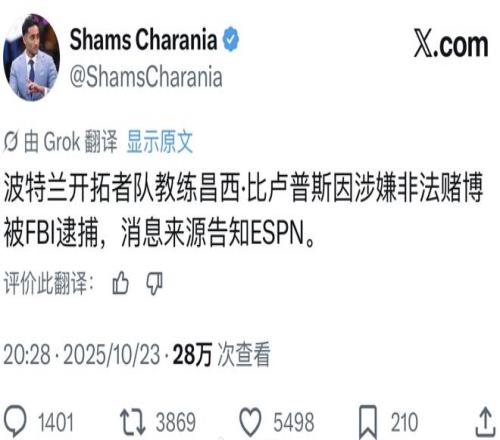 杨瀚森刚刚完成了个人的第1场NBA比赛,好不容易完成首秀,并且面对森林狼拿下2分1板小杨,现在却迎来了一个最大的噩耗和坏消息,他在开拓者这支球队的恩师比卢普斯已经被捕,理由是比帅参与了赌球!