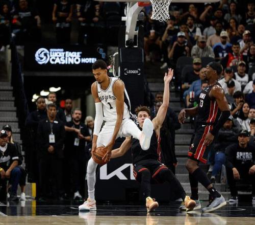 这个被勇士选中的2轮秀,已经是连续第二场比赛打出单场“20+”的表现,连续四场比赛得分上双。或许,这个夜晚,会成为效力雄鹿的罗林斯“得真鹿”蜕变契机。 罗林斯是否能完成蜕变还有待时间证明,但年轻的马刺看起来已经在向着重铸圣安东尼奥荣光策马狂奔了。 主场面对热火,新赛季开赛以来未尝一败的马刺继续高歌猛进。 哪怕阿贾-威尔逊亲临赛场助阵,让阿德巴约大发神威,独得31分10篮板3助攻1抢断1盖帽,并且上演隔扣文班的好戏,热火也终究没能攻陷马刺主场。