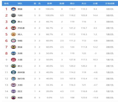 开拓者爆冷击败掘金后,战绩为4胜2负,排名从西部第五来到第四,掘金意外输球给勇士送上大礼,今日没有比赛的勇士(4胜2负)重回西部第三,掘金3胜2负,排名从第三掉到第七。