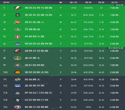 今日的NBA常规赛结束了所有比赛,西部最新积分榜如下!