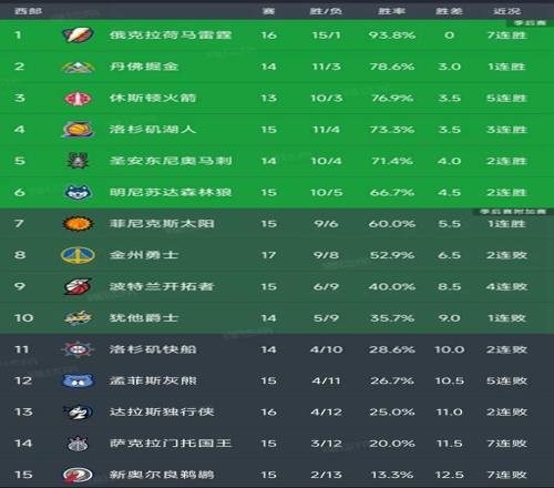 掘金客场125-118战胜了鱼腩鹈鹕,约基奇又交出了三双数据28分11篮板12助攻,但是有9次失误和6次犯规,沃特森爆发19投13中狂砍32分12篮板3助攻。目前掘金以11胜3负暂列第二名,只落后雷霆3个胜场。火箭队同样保持连胜模式,客场114-104战胜骑士,迎来一波5连胜,以10胜3负暂列第3名,胜场差和湖人是持平的,只落后掘金0.5个胜场,落后雷霆3.5个胜场。