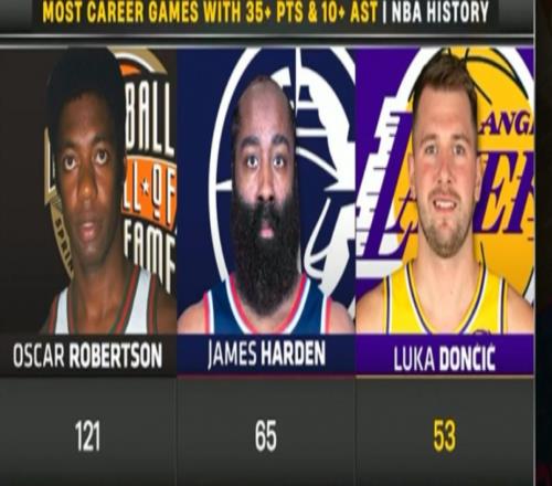 而在全场数据方面,东契奇也是在狂刷纪录: 东契奇(26岁271天)成为湖人队史最年轻单场至少40分10助攻5三分的球员;东契奇生涯已53次至少35分10助,位列历史第三;东契奇湖人生涯7次40+,超越魔术师位列湖人队史第十;