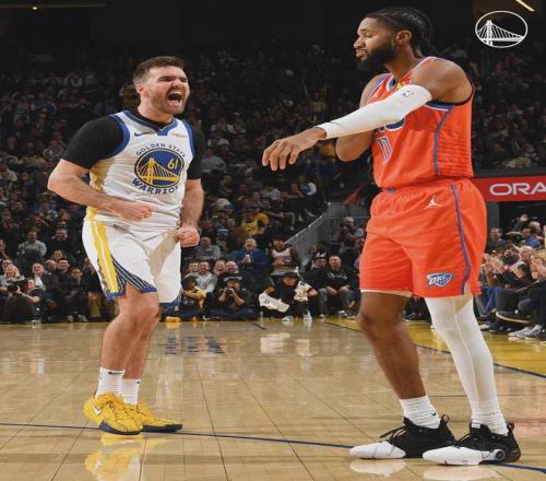 小库里上半场只打了6分钟,2投2中拿到5分。易边再战,雷霆一度领先到22分,再加上巴特勒膝盖酸痛退出比赛、追梦5次犯规。大家以为比赛要进入垃圾时间,勇三疯突然上线。每一个球员都能在进攻端做出贡献,勇士单节狂轰44分! 三节打完,雷霆91-88只领先3分。亚历山大前三节砍下31+2+3,但勇士已经起势了,只靠他自己未必能顶得住。第四节决战,小库里连得5分。本场前7次出手进了6个,结果科尔将其换下。小库里下场,还有斯潘塞,后者连得6分。