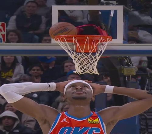 上半场打完,雷霆63-44领先勇士19分。勇士11次失误,雷霆只有5次。亚历山大半场11中6得到18分,杰威9中5得到12分4助攻。追梦4中0,仅得0分4篮板3犯规。上半场最后时刻,亚历山大罚球卡在篮脖子上,导播镜头变成一幅世界名画。