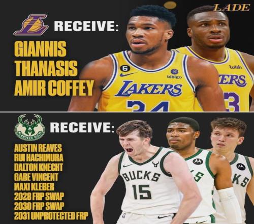 已经有美国媒体给出了一个模拟交易方案,具体来说是8换3,很劲爆了: 湖人送出里夫斯、八村塁、克内克特、文森特、克莱伯、2个首轮签互换权和1个无保护的首轮签,从雄鹿得到字母哥、字母大哥和科菲。