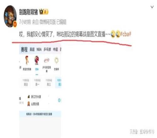 | CBA彻底崩溃了。距离CBA揭幕战还剩下一天的时间,可截止到目前,CBA新赛季的网络转播平台却还没有敲定,这也就意味着,CBA新赛季可能没有网络转播,似乎一夜间又回到了十几年前,大家都拿着手机刷着文字直播,关注着全新CBA动态。目前,CBA新赛季揭幕战广厦对阵山西,网络平台上并没有视频转播计划,他们只安排了文字转播。看样子,CBA这一次是彻底输麻了,新赛季会不会真的全程文字直播,这样的话,就算姚明再度出山,恐怕也无法挽救这样的局面。