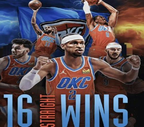 | 12月11日,雷霆138比89击败太阳,取得赛季最长16连胜,截至目前前25场比赛,雷霆24胜1负,追平15-16赛季时期的勇士!