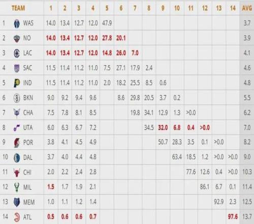 战绩差好处在于快船如今有最高的14%概率抽中状元签;坏消息是,快船明年无保护首轮签在雷霆手里。