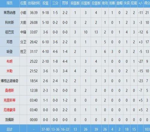 | 快船主场103-121不敌灰熊,近十战九负,目前以6胜20负西部倒数第二&联盟第三差。