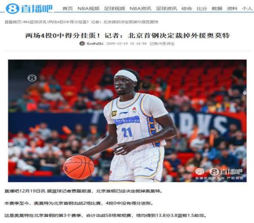 当然,北京男篮想要夺冠,还得补充外援,毕竟这个赛季,想赢球,靠外援,就对了。奥莫特的离开恰好为北京男篮腾出了名额和薪资空间,而北京男篮正在积极寻找新的强力外援,以补强阵容,剑指总冠军。 北京男篮早已经喊出了要夺冠的口号,这支球队可谓上下一心,目标明确,全力出击,力拼总冠军。放眼全联盟,能和北京男篮相抗衡的球队,基本上已经没有了,辽宁男篮是不行的,广厦男篮也不咋样。唯一的可能就是广东男篮了,但这支球队还在磨合,能不能磨合出来,还要看杜锋的调配了。 那么,问题来了,北京男篮真的能夺取总冠军吗?欢迎留言。 信息来源: 直播吧:两场4投0中得分挂蛋!记者:北京首钢决定裁掉外援奥莫特 https://news.zhibo8.com/nba/2025-12-19/6944b4e06597bnative.htm