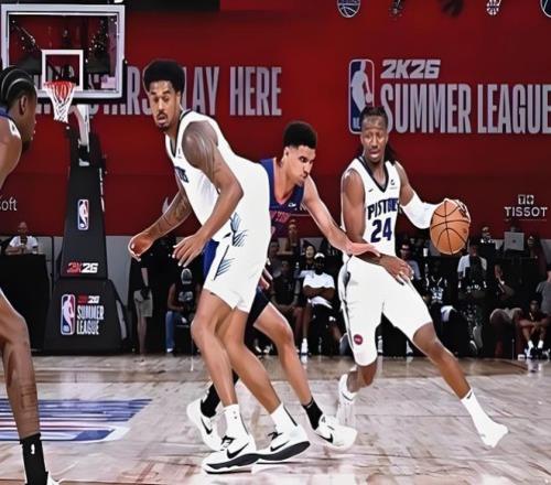 一连串未知隐患下,选秀大会那天还是没有出现奇迹,詹金斯的名字从头到尾都没有被念到。 落选,对于很多新人而言已经是结局,但詹金斯不同,活塞在选秀结束后给了他一份双向合同,一份“试用期无限延长”的临时工合同。 夏联期间,詹金斯的表现并不抢眼,场均仅9.6分,投篮命中率仅仅三成出头;相当普通的表现后,进入发展联盟的他依然低效,投篮命中率不到四成,三分命中率三成出头。 即便如此,活塞还是选择给了他零碎的NBA时间,一直到2025年休赛期,真正的转折出现: 夏联赛场上,詹金斯对飙火箭探花谢泼德打出存在感; 季前赛开始,直接顶替受伤的萨瑟进入轮换; 常规赛面对球队伤病潮,詹金斯彻底迎来机会。