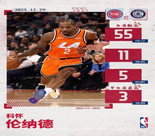 伦纳德55分&单节26分创生涯新高追平快船队史单场得分纪录