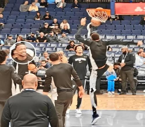 有意思的是根据美国媒体NBA Memes晒出的另个角度照片,看得出文班亚马一只脚还没有离地,他就能踢到篮网,画面真的很很离谱。 文班亚马出道时就凭借2米24的身高而出名,他比赛中可以像外线球员一样运球后撤步三分,也可以突破杀入篮下扣篮,防守端更是无所不在,他总能在意想不到的位置盖掉对手以往必进的球。