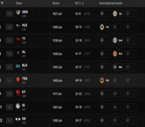 这合理吗中韩各战队最新排名:GENHLET1前三AL第四BLG第五