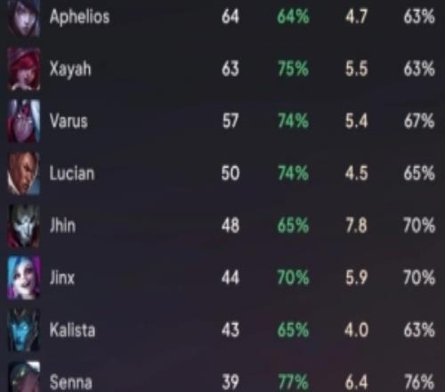 电竞新闻10月14日讯 数据网站统计Gumayusi生涯英雄:厄斐琉斯场次最多,卡莎胜率仅36%。