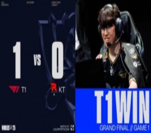 电竞新闻11月9日讯 2025全球总决赛冠亚军决赛,由KT对阵T1! 第一局前期Oner赵信河道被抓送Bdd瑞兹一血,Keria波比下路越塔强行换掉deokdam艾希,小吕布被随后来下的KT野辅逮捕。紧接着PerfecT兰博上路肉身勾引成功,多兰与Keria双双阵亡,KT拿到2k经济优势。 中期多兰上路又被KT四人越掉,小龙团战T1打出0换3,Keria波比一人开C,T1瞬间扳平前期劣势。厄塔汗团战,PerfecT兰博一波团战死两次,Oner拿到厄塔汗,T1打出2换4。小龙团Keria波比击飞KT三人,T1再打出1换3,经济领先5k。 后期T1连吃两条大龙,多兰安蓓萨开大瞬间融化deokdam艾希,KT正面再无一战之力,T1轻松一波推平KT基地先下一城。 POG: 赛后数据: 选手阵容: KT:PerfecT、Cuzz、Bdd、deokdam、Peter T1:Doran、Oner、Faker、Gumayusi、Keria 第一局: BP: 蓝色方KT:猴子、兰博、瑞兹、艾希、布隆 Ban:巴德、妮蔻、芸阿娜、牛头、烈娜塔 红色方T1:岩雀、韦鲁斯、赵信、波比、安蓓萨 Ban:沙皇、发条、永恩、伊泽瑞尔、希维尔 比赛详情: 【3:23】河道Oner被Cuzz猴子一棒敲脸,随后爆炸果实将Oner赵信炸回送Bdd瑞兹一血,KT经济领先500块。 【5:33】下路deokdam艾希塔下打残小吕布,后者黑血塔下回城,Keria波比打残deokdam艾希,随后Keria越塔强行换掉deokdam人头,此时Cuzz猴子配合Peter布隆回到下路逮捕小吕布韦鲁斯,KT打出1换2,经济领先约1k。随后KT拿到首条小龙。 【10:13】PerfecT上路被抓,KT野辅支援到位,Cuzz猴子大招击飞多兰将其击杀,Keria波比被多兰害死,KT打出0换2,经济领先约2k。 【12:18】小龙刷新,deokdam艾希一箭开团击中Oner赵信,Peter布隆举盾掩护队友输出,T1四人残血后撤,KT拿到第二条小龙,经济领先2k,本局为土龙魂。 【15:51】KT四人上路越塔融化多兰,KT推掉T1一塔,经济领先2k。 【17:48】KT中路放出先锋,Faker岩雀封墙拦住先锋,随后小龙团,Perfect兰博大招烧烤T1四人,正面Oner赵信捅飞Peter布隆,Keria波比跟上敲掉Cuzz猴子,T1打出0换3,双方经济持平。 【21:10】厄塔汗团战,小吕布韦鲁斯点掉deokdam艾希,Faker岩雀抬飞PerfecT兰博,T1打出0换2回头开厄塔汗,多兰下路清兵被Bdd瑞兹一套融化,河道Peter布隆一板砖带走残血小吕布,Oner赵信拿到厄塔汗后捅飞PerfecT兰博,后者一波团战死两次,T1打出2换4。 【24:05】小龙团,KT三人被Keria波比击飞,双方AD互换,Cuzz猴子被杀后T1拿到小龙,T1打出1换3,经济领先5k。 【27:25】大龙团战,Cuzz猴子进场换掉Oner赵信,Keria波比壁咚Bdd瑞兹,后者被T1三人融化,多兰追击PerfecT兰博得手,T1打出1换3,回头吃掉大龙,经济领先6k。 【29:43】小龙团,deokdam艾希率先睡着,双方打野互换,Bdd瑞兹开车送Peter撤退,正面PerfecT兰博被卖,T1打出1换3回头拿到小龙,听牌土龙魂,经济领先7k。 【31:18】T1下路推掉KT二塔后直取KT水晶撤退,经济领先9k。 【35:15】Keria波比锤飞Cuzz,T1轻松拿到第二条大龙,经济领先1w。中路团战,多兰安蓓萨开大融化deokdam艾希,Bdd瑞兹送多兰双杀,T1一波推平KT基地先下一城。 |
