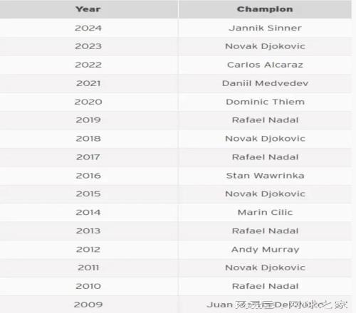辛纳遭遇阿尔卡拉斯成功复仇,再次让费德勒在法拉盛的伟大彰显了出来。 自从2004年和2008年费德勒在美网实现五连冠后,从2009年的德尔波特罗开始,美网的男单冠军便进入了魔咒笼罩时代,在长达16年的时间里无人能够卫冕。原以为今年辛纳能够打破这一僵局,跟萨巴伦卡保持神同步,破解这一魔咒后,从此让男单也迎来全新的格局,可惜最后他失败了。