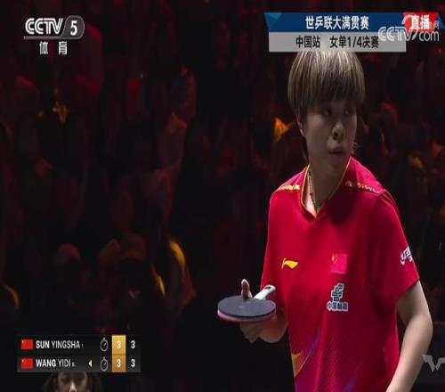 10月3日,WTT中国大满贯女单1/4决赛,孙颖莎4-3(14-12、4-11、11-6、7-11、12-14、11-3、11-8)战胜队友王艺迪,晋级四强。孙颖莎半决赛的对手是陈幸同和朱雨玲之间的胜者。 |