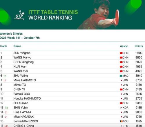 国际乒联公布了最新世界排名,代表中国澳门参赛的朱雨玲升到了第六,超越了日乒新一姐张本美和。朱雨玲在去年9月复出参赛从零开始,只用了1年时间就升到了世界第六。