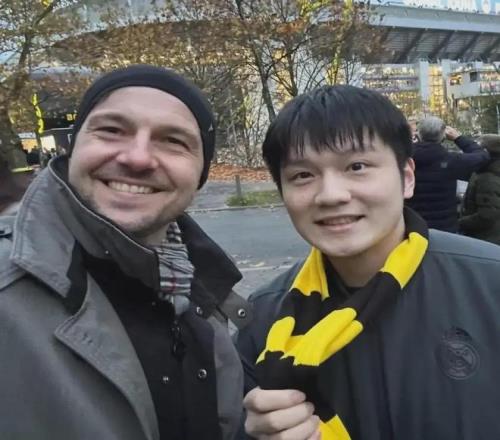 波尔曾驱车6小时带樊振东去多特蒙德主场看球。 刚和樊振东一起吃火锅 波尔是中国乒乓的老朋友,这次来到中国,少不了和一些老友相聚。这几日除了参与俱乐部相关的业务外,波尔也忙里偷闲和樊振东约上了。 “我们在上海碰面,一起吃了海鲜火锅。”波尔与樊振东的交集并不少,因为樊振东加盟了德国俱乐部,之前在德国两人就聚过,一起吃饭,参加家庭聚会,因为都是足球迷,两人也少不了一起侃球。 波尔表示:“很高兴我们能有更多碰面的机会,他其实非常忙,需要训练和备赛,但百忙之中能够来我的家里,和我与家人共进晚餐,这让我非常开心,我们还一起在家附近打了网球。最重要的是,他也喜欢看足球,之前我们一起看球的经历让我记忆深刻。” 早在2023年11月,多特蒙德与拜仁的德甲双雄会时,波尔就曾驱车6小时接上樊振东,带着母亲亲手烤的苹果派一起前往多特蒙德的主场,赛后波尔在社媒写道:与世界最好的樊振东临时起意去看球! 当下,波尔表达了想和樊振东再次去多特蒙德主场看球的想法,“他和我说之前的体验非常棒,很想再去看球,他也很想体验赛场周边的各种美食,我清楚职业运动员的自我管理非常严格,饮食上有要求。他现在不能喝酒,我们见面都是喝水,希望未来有一天,在樊振东开启人生新阶段后(不做职业球员后),我们可以在球场里边看球,边品尝一下德国啤酒。” 波尔是真没把樊振东当外人,已经有些着急向他推荐德国的特产。在此前的采访中,波尔曾经直言,樊振东是他职业赛场上遇过的最难对付的选手,“除了樊振东,我几乎赢了所有人。”而这种惺惺相惜,显然从场内延展到了场外。