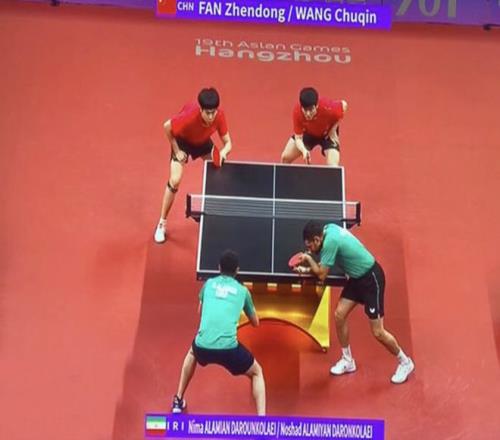 然而,对于这个年龄段的本雅明来说,力量确实不在首要的考虑范围内,而是专注于自己的技术细节,和灵活多变的思路。目前的40+ABS塑料球,在起跳后明显发飘,笔者自己比赛的时候下网的情况明显增多,所以抢点发力的技术是必不可少的。但以目前伊朗的局势来看,能保住现有的技战术水平,已经是非常艰难的事情。 而谈到本雅明的技战术特点,就不得不聊聊伊朗的乒乓球发展。 在2023年的杭州亚运会上,伊朗爆出惊天大冷门,男团项目的8强比赛中,伊朗队以3:0的成绩击败拥有张本智和,户上隼辅,吉村真晴的日本队,时隔65年再度闯进亚运会xian'z决赛,并拿下一枚铜牌。不仅如此,他们的阿拉米扬/阿拉米安的男双组合,也成功闯进半决赛,0:4负于中国队樊振东和王楚钦的组合。