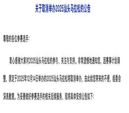 2025汕头马拉松取消,报名费全退,补偿交通住宿手续费