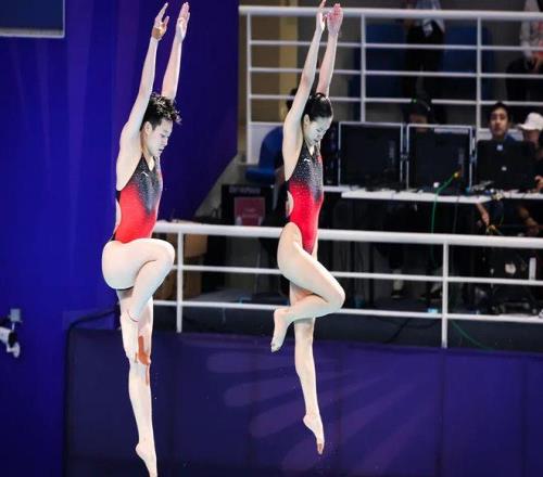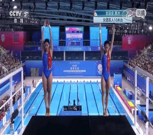 最后进行的是 女子团体双人10米跳台比赛 全红婵伤愈首秀 全红婵/王伟莹代表广东队出战 两人以第一名的成绩完赛