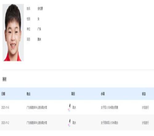根据官网公开信息显示,2日的女子团体双人10米台,广东队由蒋林静/谢佩铃、全红婵/王伟莹参加,比赛将于19时51分开始。 6日的女子双人10米跳台预赛,广东队由何妍伟/罗春晓、全红婵/王伟莹参加,预赛10时进行,决赛18时进行。 据名单显示,上海队的陈芋汐和北京队的张家齐都将参与女子10米台的角逐。