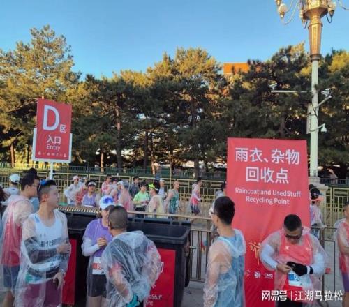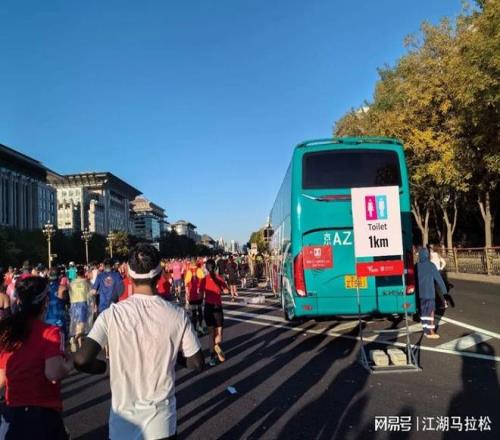 北京甚至都不需要专门为马拉松做什么,地铁正常运行,已足以满足所有参赛者的需求。上了二号线后,广播里清楚地提醒你,到了前门站,从C口出。从前门地铁站出来,又钻了两次地下通道,过了一个路口,才进入集结区。 始终在你身边的,都是人流。安检过后存包区,大家真的是在挪动,也许有优化空间,但对于一场大型马拉松,让你更具象化地体验到一种烟火气。 在长安街的移动卫生间,都是北京环卫集团的一辆大巴车。在起点区域的卫生间甚多,小便池挺大,解决了大问题。 任何一个补给站,从头望不到尾。后半程的多个喷雾站,志愿者双手都在喷,起码一百米,密密麻麻站着。你临近他们跑,即便没停下来,热心的志愿者都会喷到你腿上。