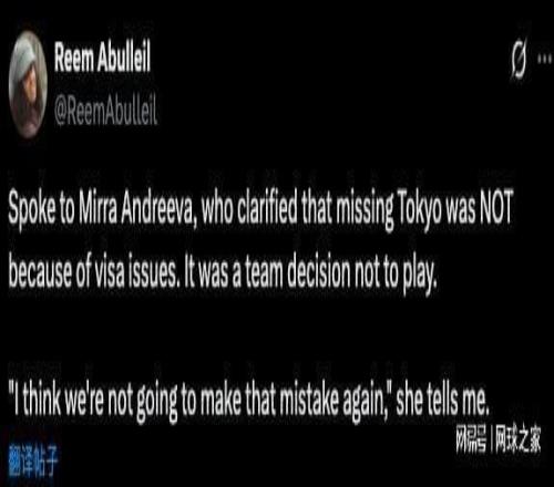 | 今年夺得两个1000赛女单冠军的安德列娃错失利雅得年终总决赛参赛席位,一直让很多球迷为之叹息。此前有消息称,安德列娃团队曾试图参加东京赛为参赛席位做最后的争取,但最终因签证问题无缘参赛,近日,安德列娃对于这则传闻进行了辟谣。