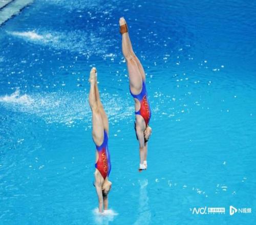 全红婵/王伟莹入水瞬间。 本场比赛是全红婵在本届全运会上出战的最后一个项目,她此前与王伟莹搭档参加了跳水首日的女子团体赛,并获得双人10米台第一,为广东跳水队夺得女团金牌立下功劳。